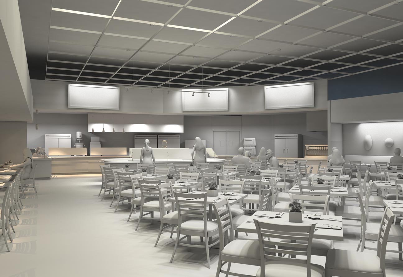 Below are images of how a 3D rendering might look before it is “skinned” with all the materials, and the completed image. It was created by FFKR rendering team.
