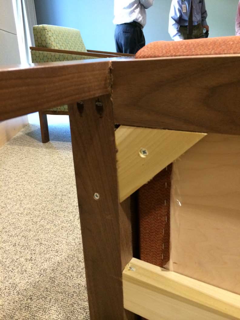 This is the second time I have worked with the inmates at the prison to provide furniture for a project. Both projects were for a healthcare project for the University of Utah. Because of their good experience with using them previously, they wanted to explore working with them again on this new project. In the past they have made “waiting room/lobby” type furniture (If you have been to the Moran Eye Center, you have seen what they are capable of producing.) This is the type of furniture we are working with them to produce again. Because these individuals aren’t furniture makers by trade – at least yet – and because the intent is to get them out of the prison system, your most experienced workers may not be there for a long period of time – thus creating an “ever training” environment. The downside of that, is that they haven’t had years of experience to work out all the bugs in how furniture goes together. But on the upside, they will work to build any of the designs you give them and will make mock -up samples for review and commit to make sure they get it right.