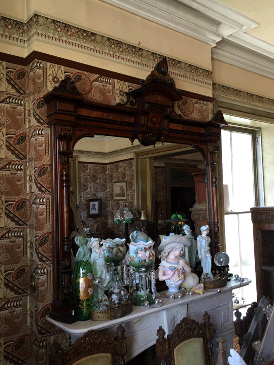 All of these of the Eastlake design movement or a blend of Eastlake and Renaissance Revival. The lighting can cross design movements, but are typical of the era. The seating is in the original upholstery…I am digging the chartreuse green.