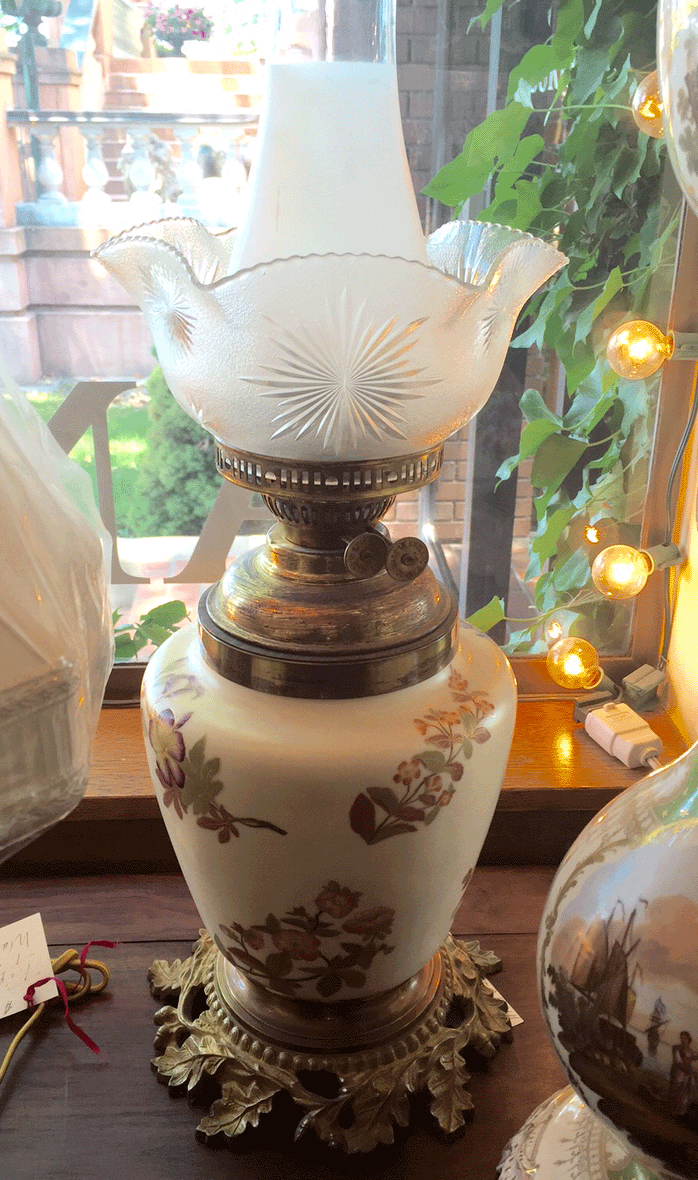 2. Antique Lamps: This project needs about 70 lamps. Because this project is a Historic remodel from the 1800’s, lamps have not been the easiest thing to order “off the shelf.” The market for Victorian lamps isn’t what it once was and the distinctive glass shades have been hard to find. A lot of suppliers for them have disappeared from the market. Finally, a vendor for lamps was able to find a source that could supply the typical shades of that design era. We took some of their standard lamps and “victorianized” them with the historic shades and crystals typical to the design movements of that era. These would be used as the general lamps throughout. Then after much antique shopping, I was able to find a handful of lamps that are 90-100% antique that could be scattered around the project as design highlights. These will really be jewels of the project, giving the true flavor of the time period. Some of these antiques have been converted to electricity already. Some have not. But, I have found a local supplier that can do that for a reasonable amount of money.