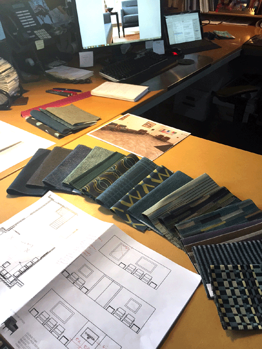 Next step was getting the upholstery and wood finishes approved, and art work selected. Today I took a small portion of the morning to get everything pulled together and prepared to meet with the Client. This included selecting fabrics that were currently running-line fabrics (I am always surprised at how many times I call on a fabric that seems to be perfect, only to find out it has been discontinued). He showed up at 10 A.M. and within 30 minutes we were done discussing this project and on to something else we are working on together.
