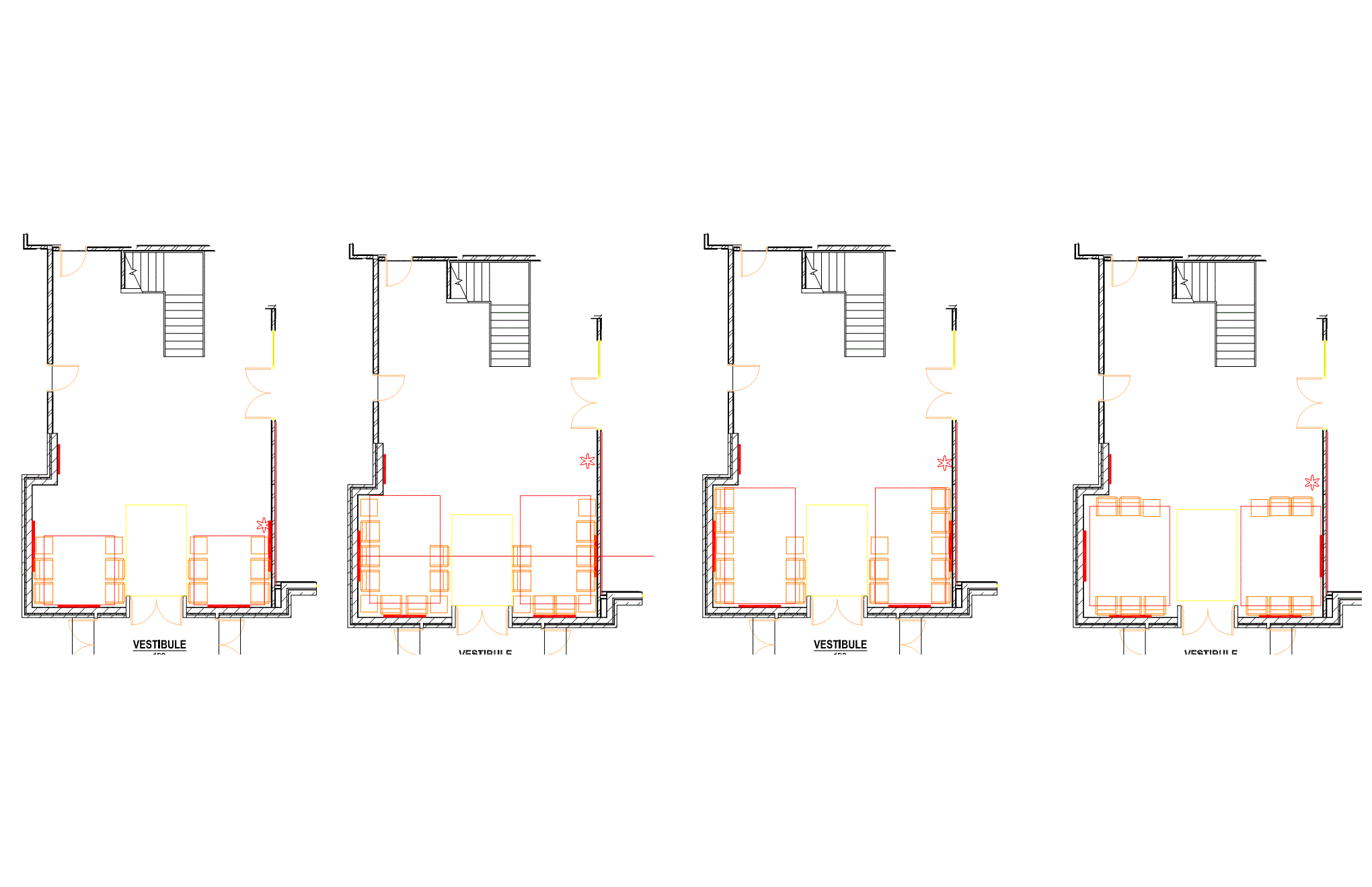 After sending these out, I received some preliminary feedback that the client wanted to not have “perimeter-itis” furniture plan. What is perimeter-itis” you ask?