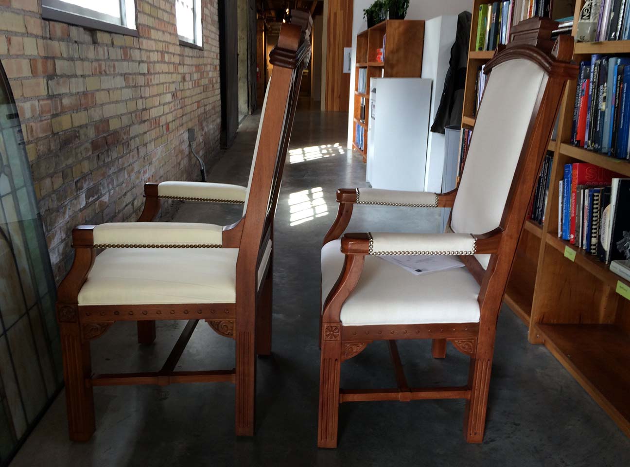 We had a number of furniture makers bid the chair. Once a manufacturer was selected and approvals were given from the Owner, the chair was put into production. Below are some parts and pieces of the process: