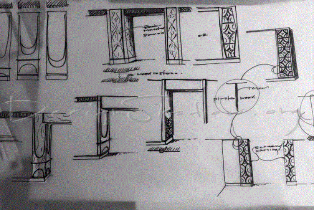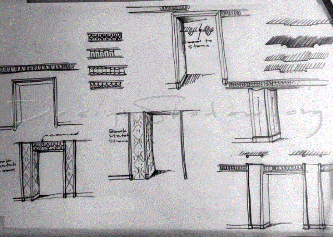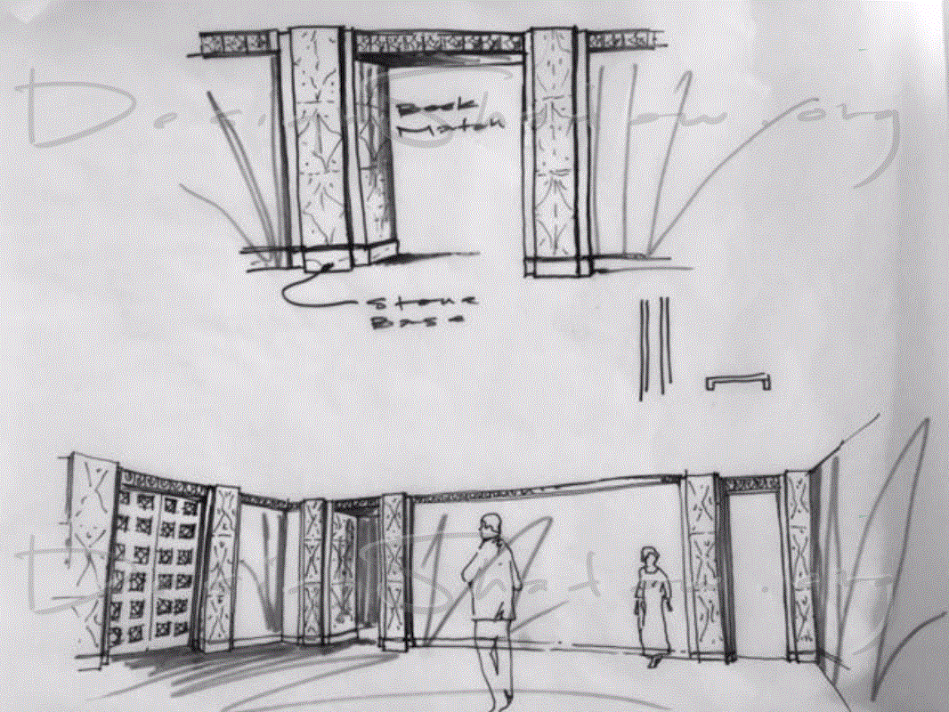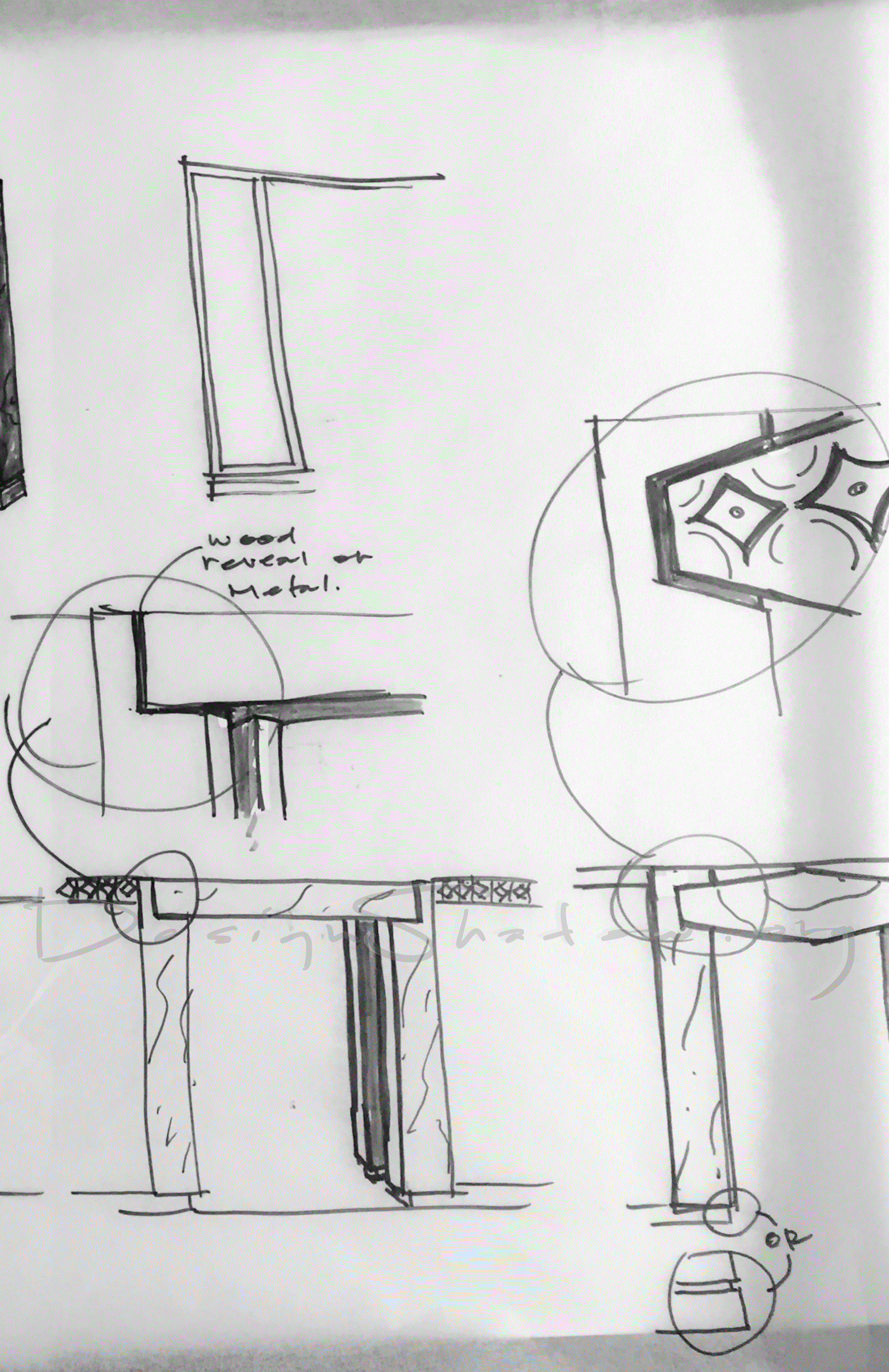 Our team of Architects and Interior Designers recently had the space plan and exterior design for a new project approved by the Owner. Now it’s time to define the interior architecture and designs. We call this establishing the vocabulary of the building. Today I spent time thinking with my pen and fodder (tracing paper). This project is out of the country and in Africa, so we are trying to incorporate design elements that relate to that culture and people. Not only is this project culturally specific, but our design directive is to land somewhere between Modern and Mid-Century modern. The lead Architect and I are both completing this exercise and then will run our ideas by each other to sift them out and see which concepts rise to the top. Here are some of my quick and rough thoughts…